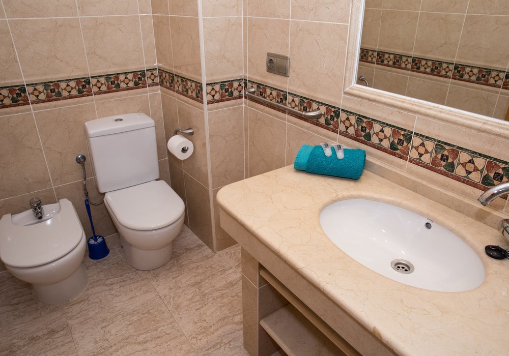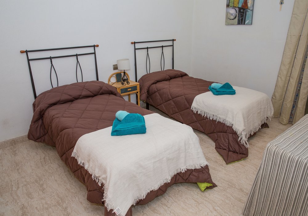 Es gibt drei weitere Schlafzimmer mit 2 Einzelbetten und ein Familienbadezimmer mit Badewanne und Dusche.
