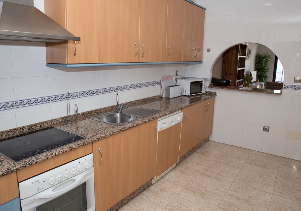 Vom Essbereich aus betreten Sie die gut ausgestattete Küche mit Geschirrspüler, Kühl- / Gefrierschrank, Mikrowelle und Wasserkocher. Angrenzend an die Küche befindet sich ein kleiner Hauswirtschaftsraum mit Waschmaschine.